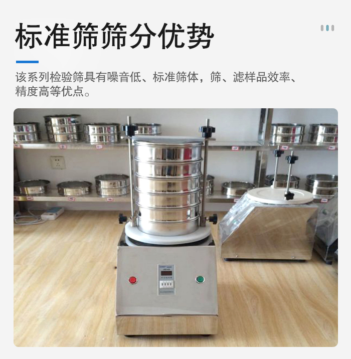 該系列檢驗(yàn)篩具有噪音低、標(biāo)準(zhǔn)篩體,濾樣品效率、精度高等優(yōu)點(diǎn)。